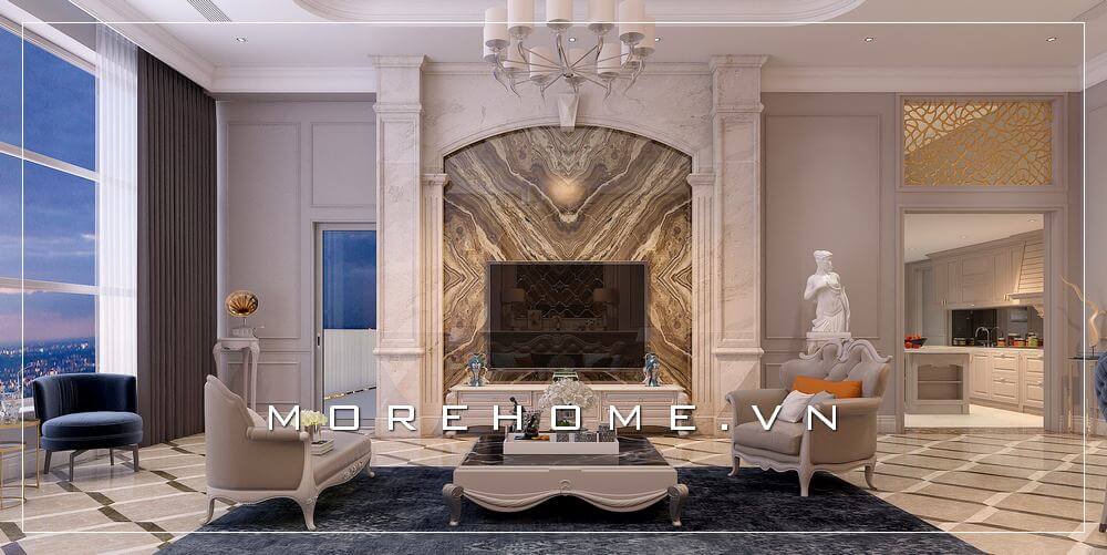 Thiết kế phòng khách chung cư đẹp theo phong cách tân cổ điển hoàng gia, lộng lẫy lôi cuốn